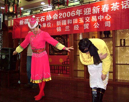 新疆宝玉石协会2006年迎新春茶话会于1月8日在人民饭店举行,本次活动得到了新疆和田玉交易中心和锦兰经贸公司的协办支持。